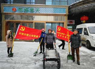 2018-03-16黨旗飄飄,安徽交建黨委除雪鏟冰獻(xiàn)真情