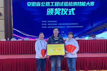 近日,安徽省公路工程試驗檢測技能大賽在合肥市圓滿舉辦,本次比賽中,安徽交建路通檢測公司喜獲團體比賽三等獎,周蓉同志獲橋隧組個人比賽第二名,并授予“安徽省交通運輸...