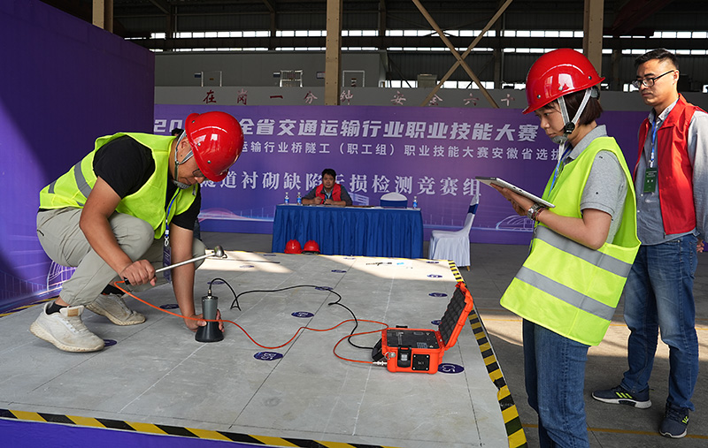 據(jù)悉,此次大賽由安徽省交通運(yùn)輸廳、安徽省人力資源和社會(huì)保障廳共同舉辦。本次大賽共設(shè)置城市軌道交通行車(chē)調(diào)度員、新能源汽車(chē)維修工、橋隧工、電動(dòng)港口裝卸機(jī)械司機(jī)4個(gè)職業(yè)賽項(xiàng)。比賽采取理論知識(shí)競(jìng)賽和操作技能競(jìng)賽相結(jié)合的方式,涵蓋了鋼筋骨架加工、隧道襯砌缺陷無(wú)損檢測(cè)、施工放樣3個(gè)競(jìng)賽項(xiàng)目。